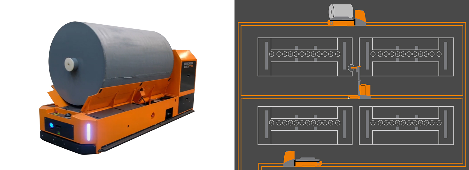 | ● | 為大布卷自動搬運,提供AGV方案。 | |