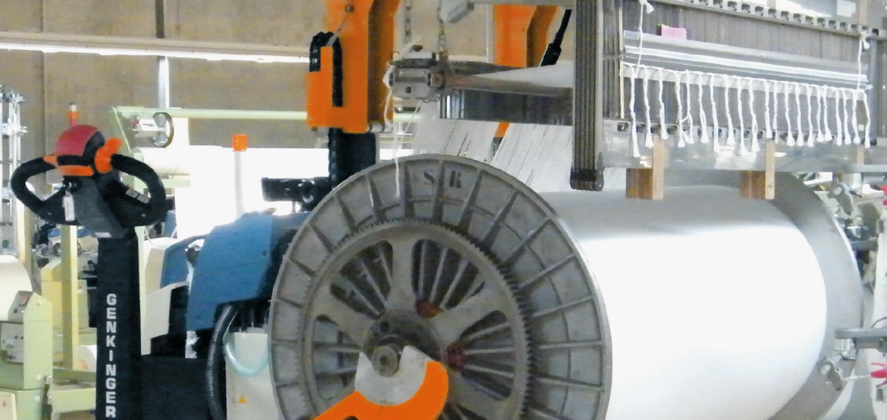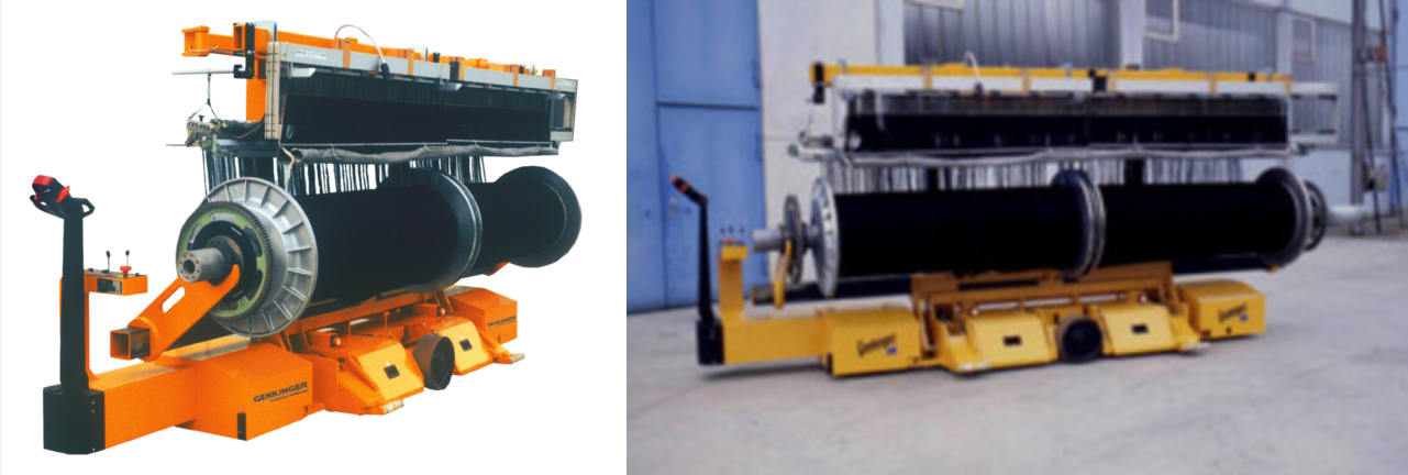 應用在牛仔布上的雙幅經軸上,車體長度幾乎不超過經軸長度,可在狹窄的過道行走。
