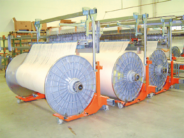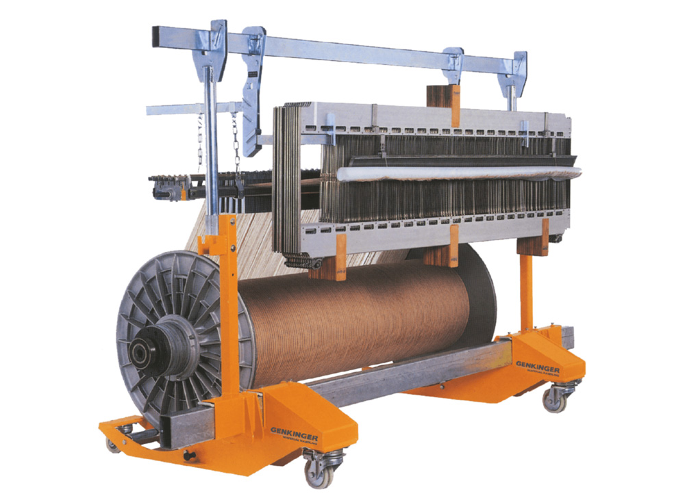 應(yīng)用于經(jīng)軸穿綜作業(yè)的臨時(shí)存儲(chǔ)與中轉(zhuǎn),可用在各種門(mén)幅的織機(jī)經(jīng)軸上。